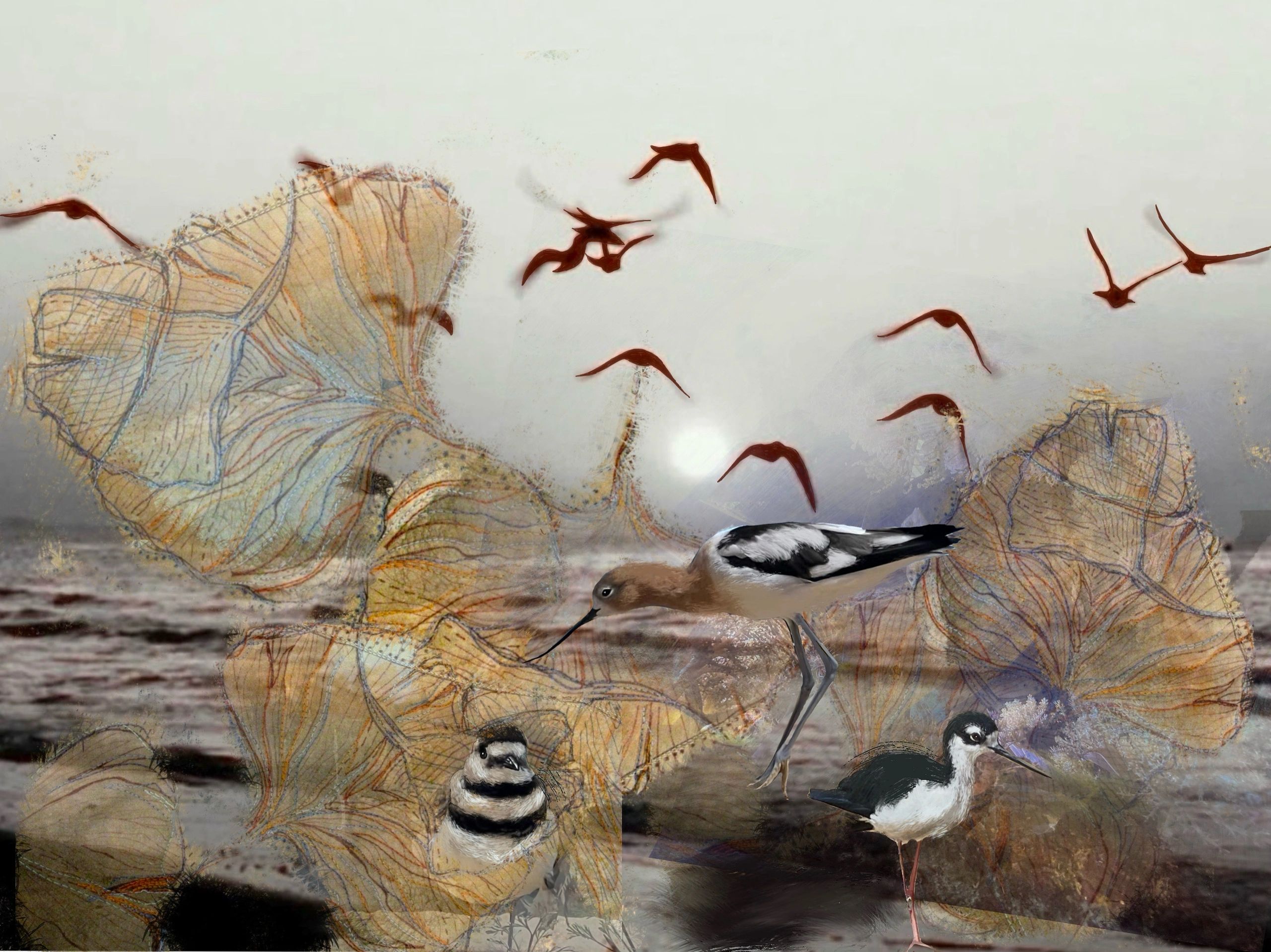 Judith’s work consists of layers of paint and paper applied intuitively to the canvas and sanded back to reveal images that reflect an emotion, a memory, or a thread of common experience. A peek into the layers might evoke a story of a peaceful simpler time: Bird song in our back yards, picnics in parks, or even walks through imaginary cities or forests. With no agenda for what the piece will ultimately say, she follows the direction her art leads her. Birds symbolize peace, transformation, freedom and power. Using images, colors, shapes and textures found in nature, she tries to connect with and preserve the beauty and tranquility of nature. Judith has exhibited in many shows and her work is in collections internationally.